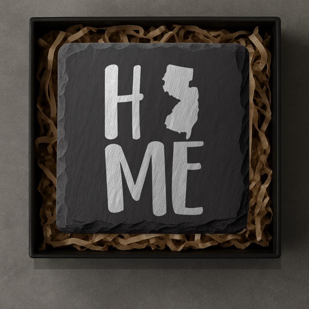Celebrate New Jersey pride with handcrafted slate coasters inspired by the Garden State. Each coaster is made from natural black slate with rustic cut edges and permanently laser engraved so the artwork will not fade or peel. Sized at 4x4 inches, these coasters protect your surfaces while adding New Jersey home décor to your kitchen, living room, or bar.