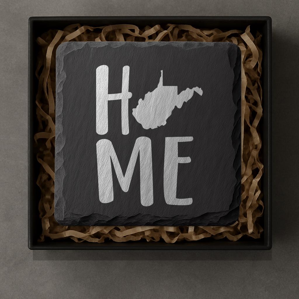 Celebrate West Virginia pride with handcrafted slate coasters inspired by the Mountain State. Each coaster is made from natural black slate with rustic cut edges and permanently laser engraved so the artwork will not fade or peel. Sized at 4x4 inches, these coasters protect your surfaces while adding West Virginia home décor to your kitchen, living room, or bar.