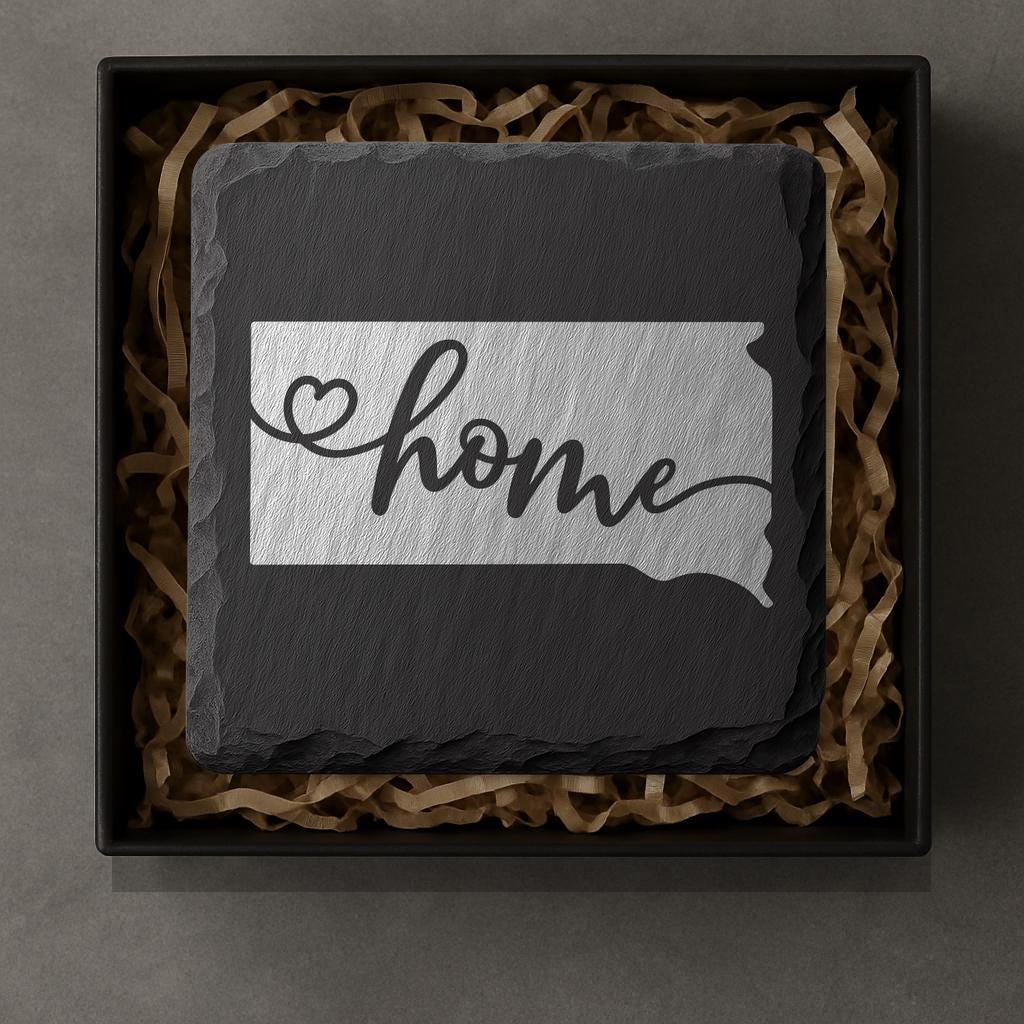 Celebrate South Dakota pride with handcrafted slate coasters inspired by the Mount Rushmore State. Each coaster is made from natural black slate with rustic cut edges and permanently laser engraved so the artwork will not fade or peel. Sized at 4x4 inches, these coasters protect your surfaces while adding South Dakota home décor to your kitchen, living room, or bar.